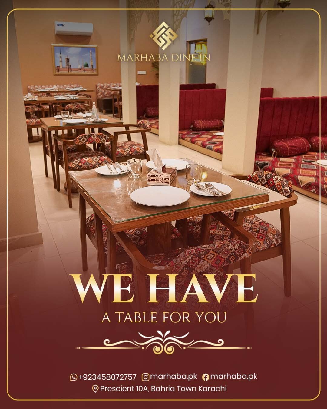 Professional food shoots and social media management for Marhaba Dine-Inn, highlighting its premium dine-in experience and diverse traditional and Western cuisine.