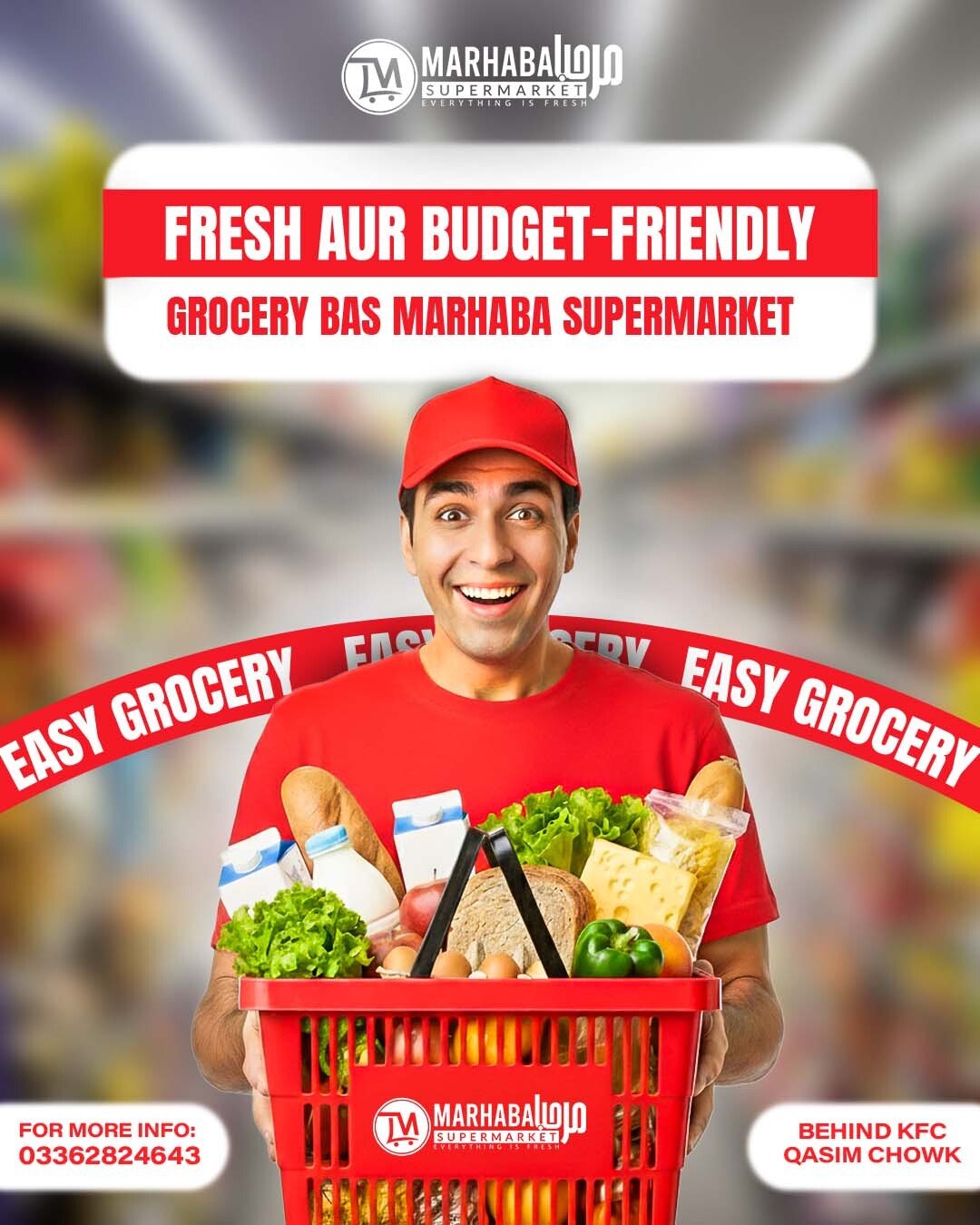 Category-wise product photography and engaging social media creatives for Marhaba Supermarket, boosting online presence and sales.
