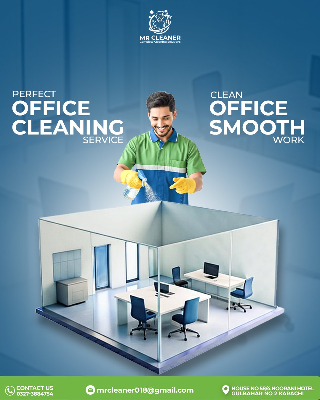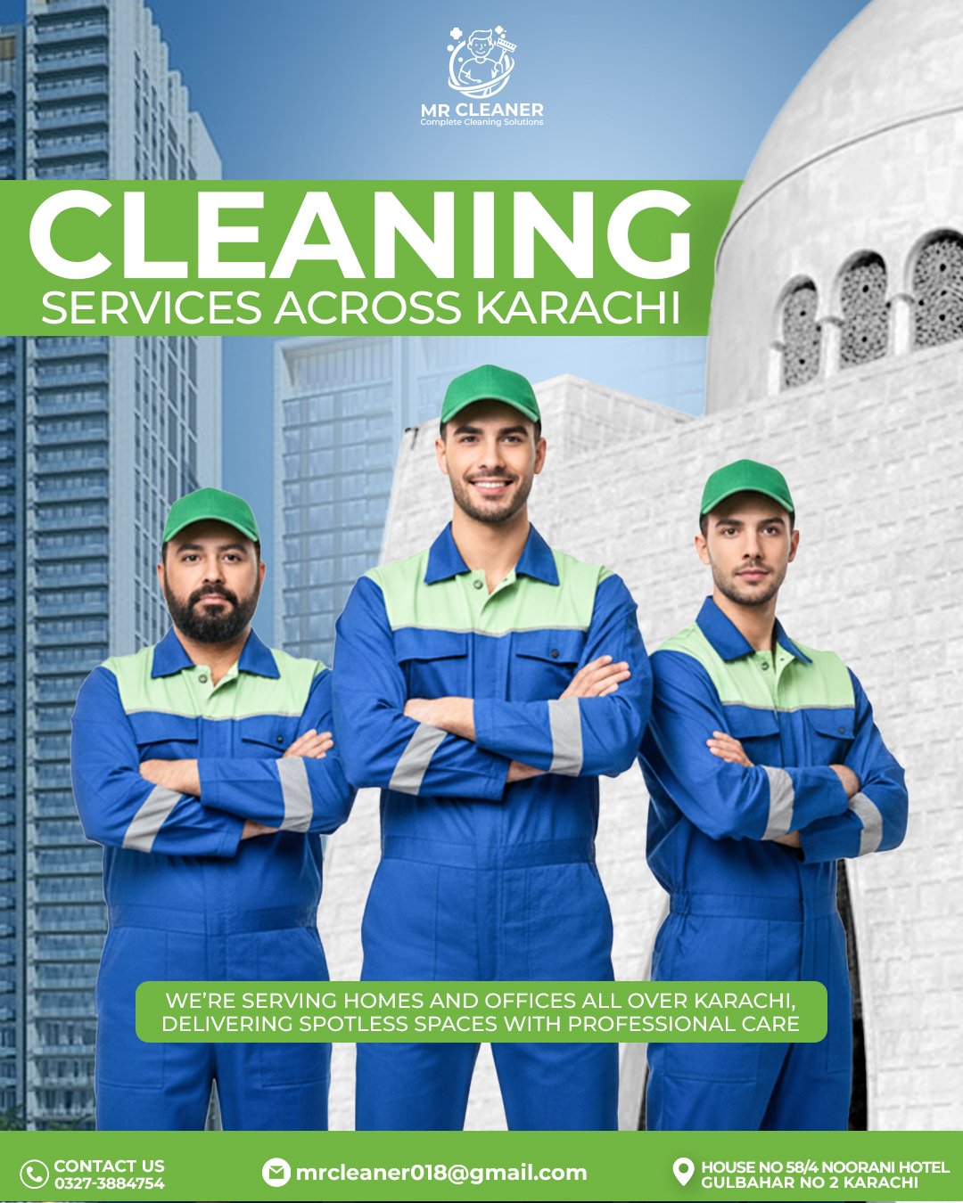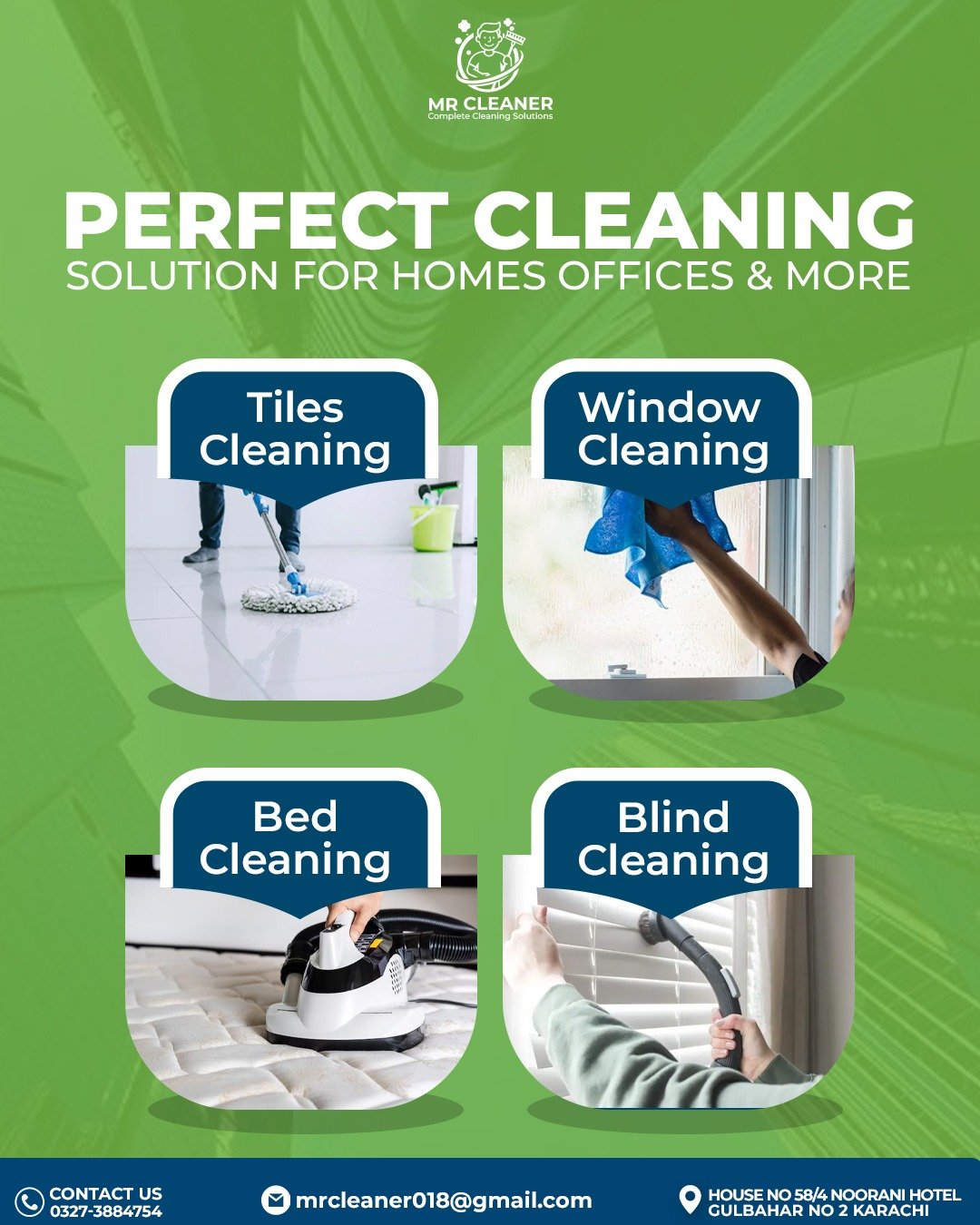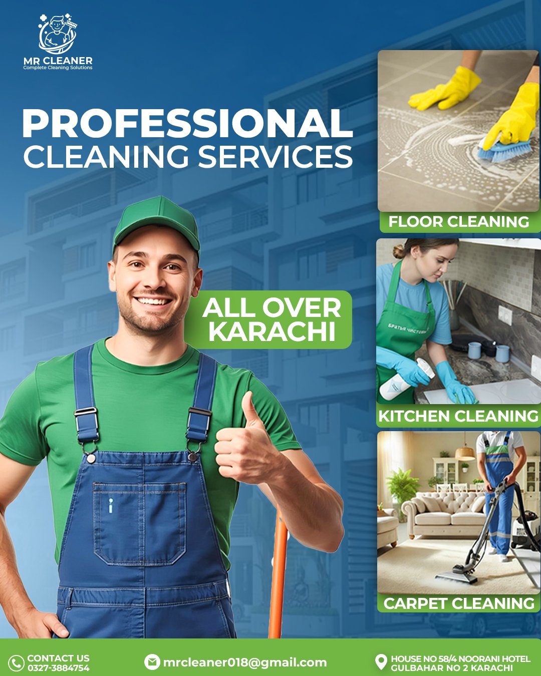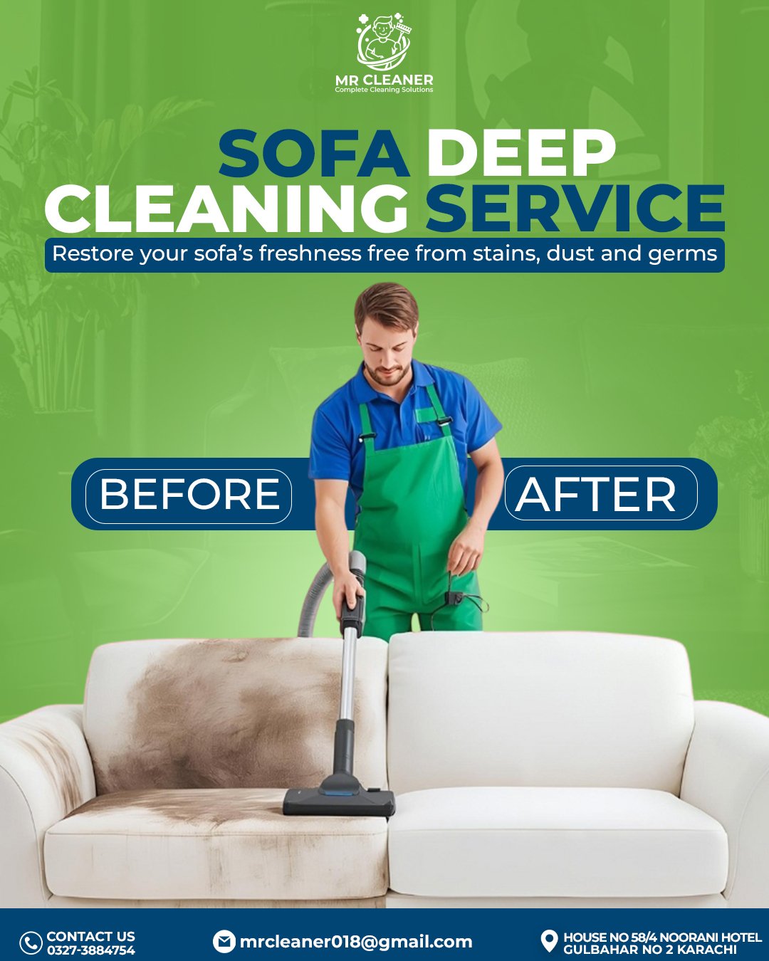 Mr Cleaner, a Karachi-based professional cleaning company, worked with us to strengthen their brand visibility and improve their digital presence. The focus of this project was to create clean, professional visuals and digital content that clearly communicate the company’s services and reliability.
